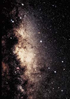 The Southern Cross, or Crux, lies in a dense region of the Milky Way. I once read the remark: "What's so special about the Southern Cross? It's the smallest constellation, and it consists of only five or so stars.'' Whoever wrote these lines couldn't possibly have seen the constellation. Crux is striking, a real jewel box. Three of the stars shine at 1st magnitude, the others at 3rd magnitude. The Southern Cross is distinctive, in a league with Orion's belt and little else. It's also adjacent to the remarkably dark Coalsack, an apparent hole in the Milky Way about 5° across. The Coalsack is actually an interstellar dust cloud that blocks the light from stars behind it. Because it's surrounded by a host of stars in the Milky Way, the black patch appears darker. The Coalsack is unlike any other dark region in the sky.