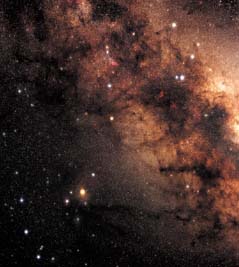 The southern Milky Way holds such contrasting gems as the Eta Carinae Nebula (left center) and the Coal Sack (center). Photo by Luke Dodd |