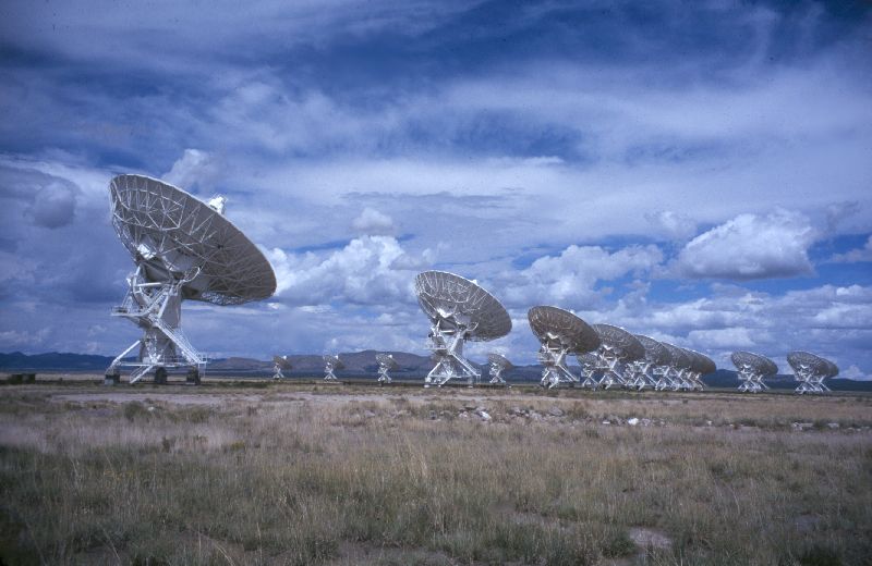 Large Array near Socorro, New Mexico. As a radio telescope, the VLA can observe during daylight and through clouds.