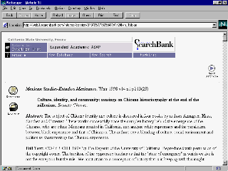 I entered history california mexicans into the search engine and came up with some excellent sources. Below is the report of the citations found on this search. About 1/3 of over a million articles in the database are available for viewing in full-text form, including graphics. That is actually amazing--when I was in college, such a possibility was literally only talked about in science fiction stories.